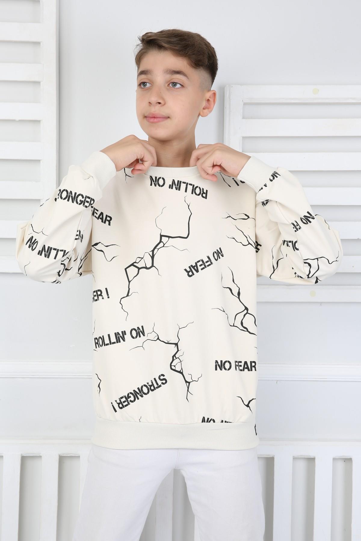 %100 Cotton İki İplik Baskılı Erkek Sweatshirt (7502KRM)