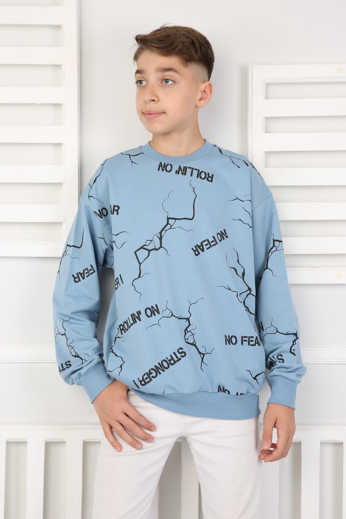 %100 Cotton İki İplik Baskılı Erkek Sweatshirt (7502MVI)