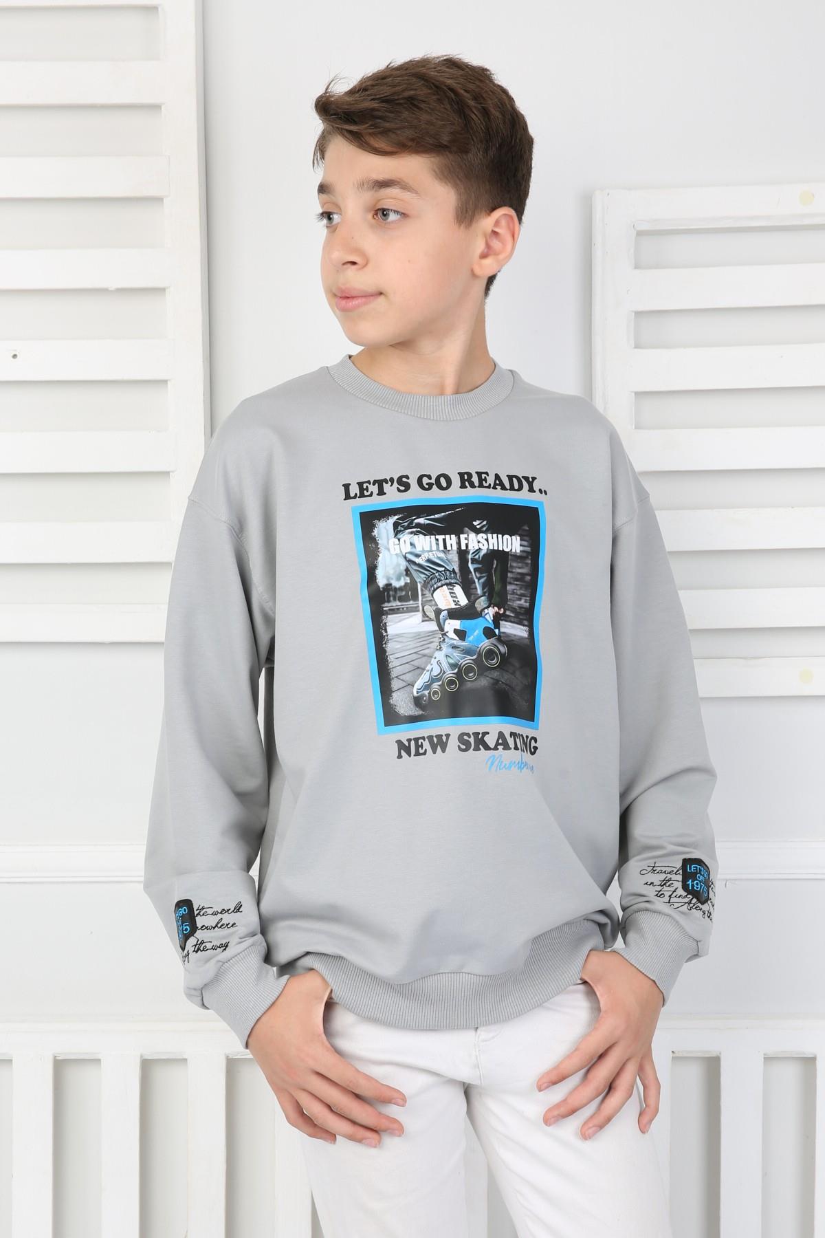 %100 Cotton İki İplik Baskılı Erkek Sweatshirt (7686GRI)