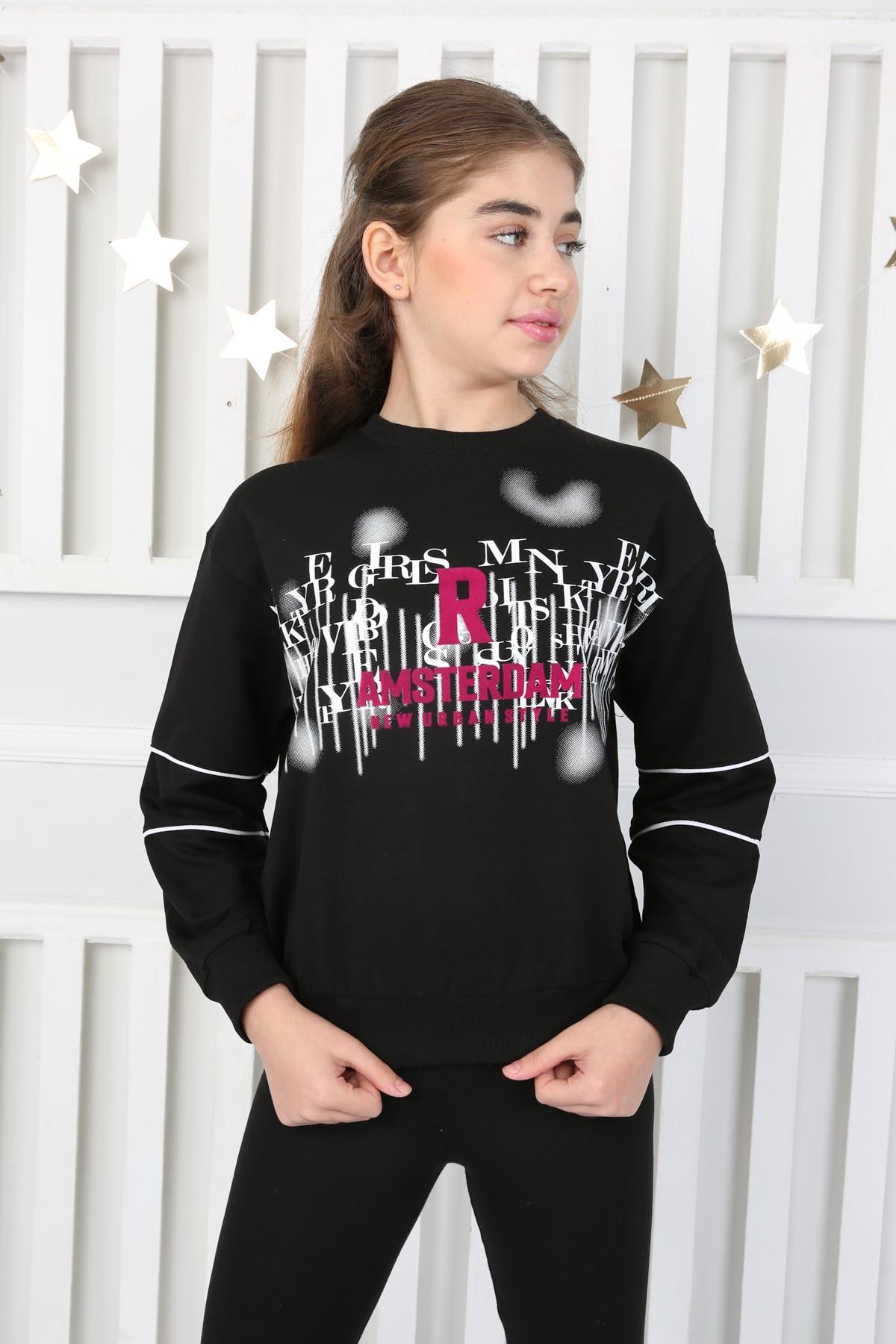 %100 Cotton İki İplik Baskılı Kız Sweatshirt (6545SYH)