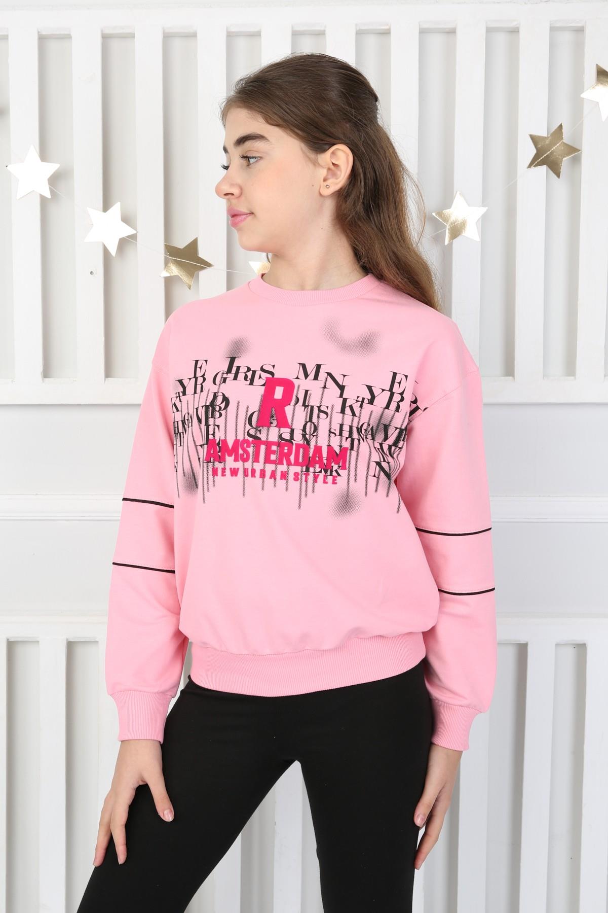 %100 Cotton İki İplik Baskılı Kız Sweatshirt (6545PMB)