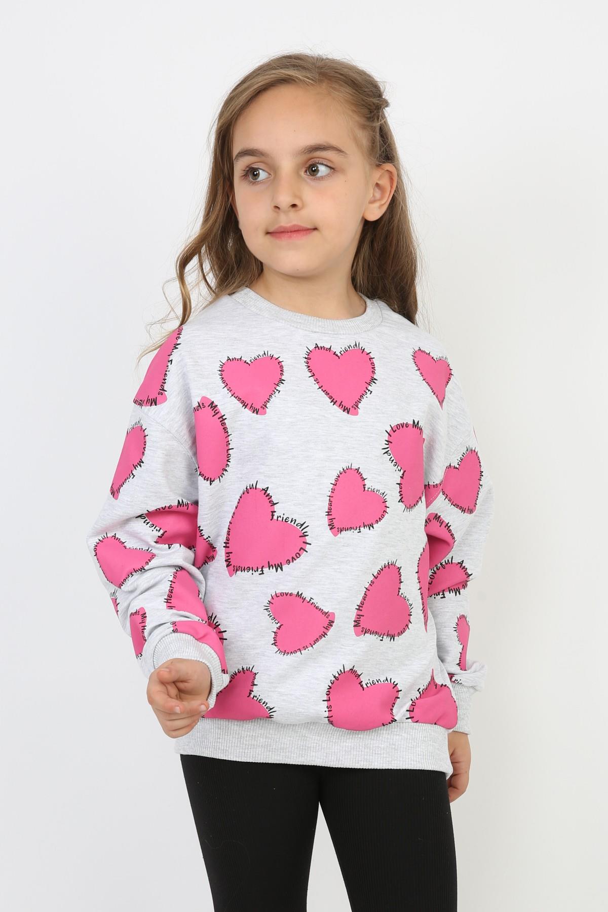 %100 Cotton İki İplik Baskılı Kız Sweatshirt (6525GRI)