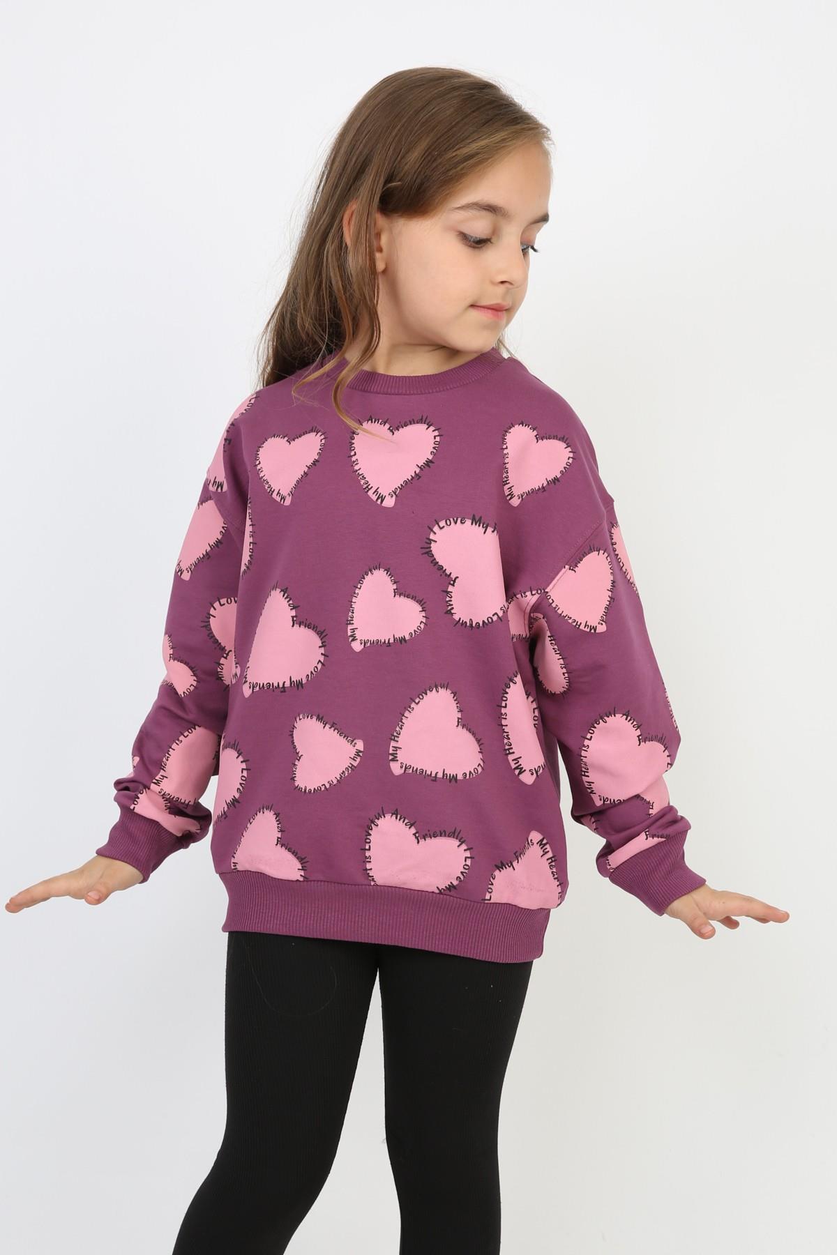 %100 Cotton İki İplik Baskılı Kız Sweatshirt