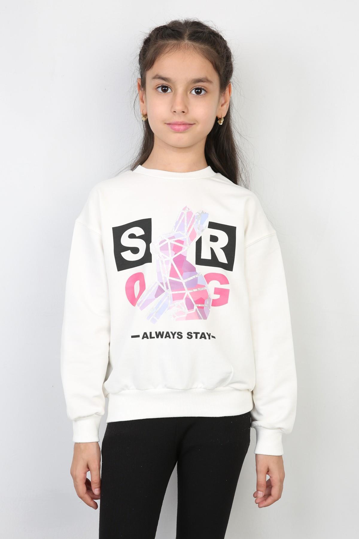 %100 Cotton İki İplik Baskılı Kız Sweatshirt (6626BYZ)