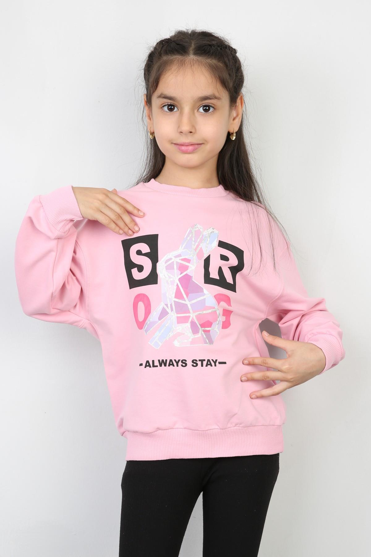 %100 Cotton İki İplik Baskılı Kız Sweatshirt (6626PMB)