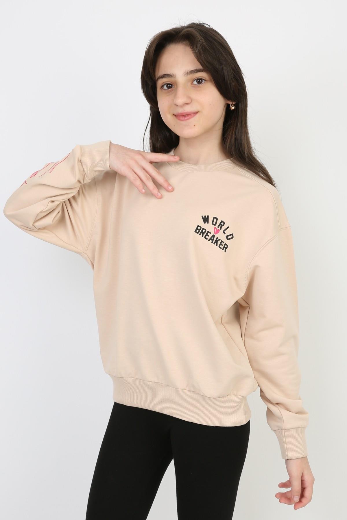 %100 Cotton İki İplik Baskılı Kız Sweatshirt (6603VZN)