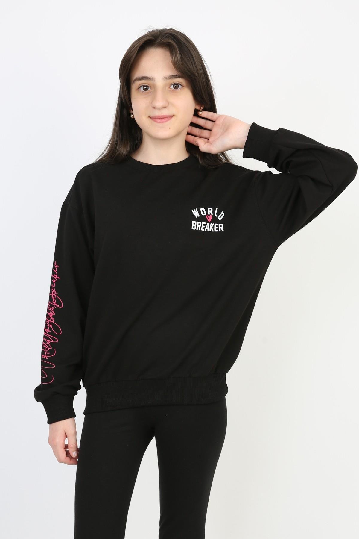 %100 Cotton İki İplik Baskılı Kız Sweatshirt (6603SYH)