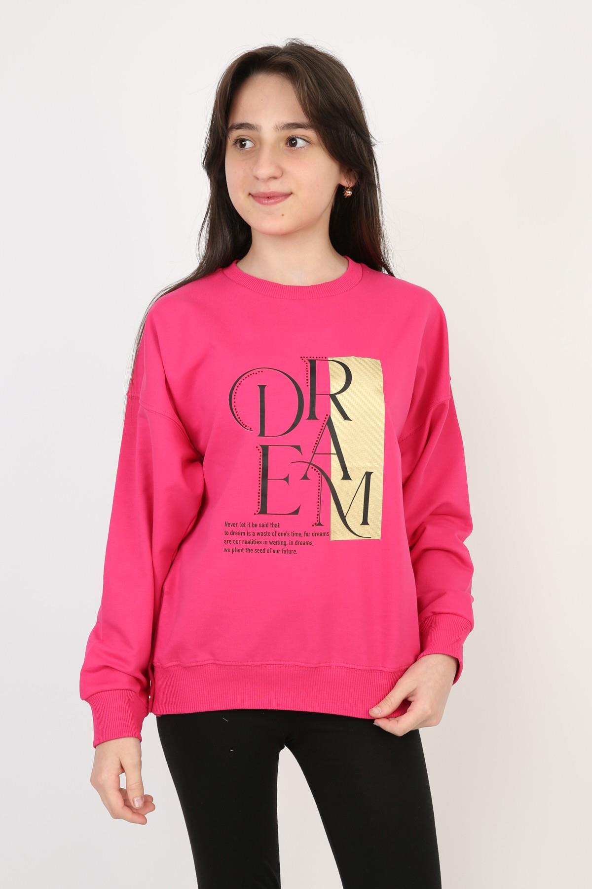 %100 Cotton İki İplik Baskılı Kız Sweatshirt (6502FSY)