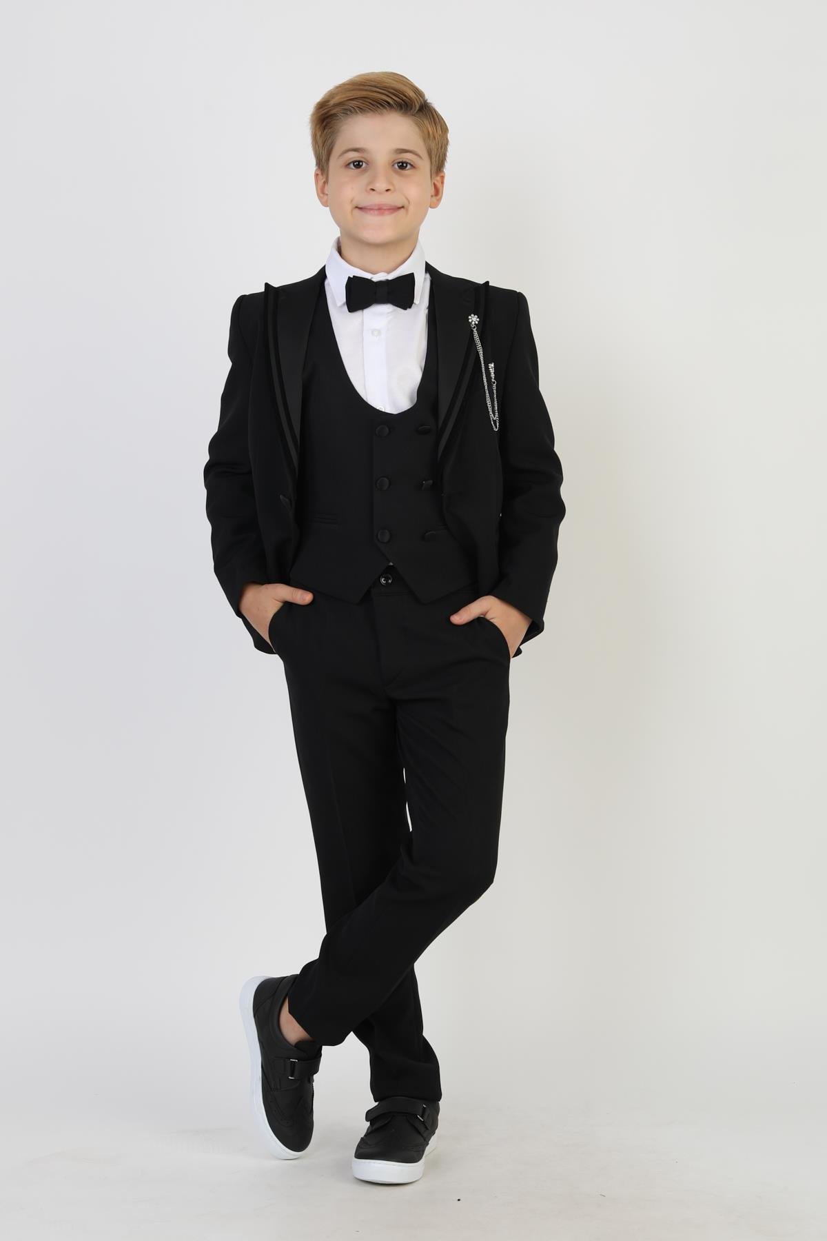 · Smokin kesimi ve klasik detaylarıyla düğün, nişan ve özel davetlerde çocuğunuzun yıldız gibi parlamasını sağlar;