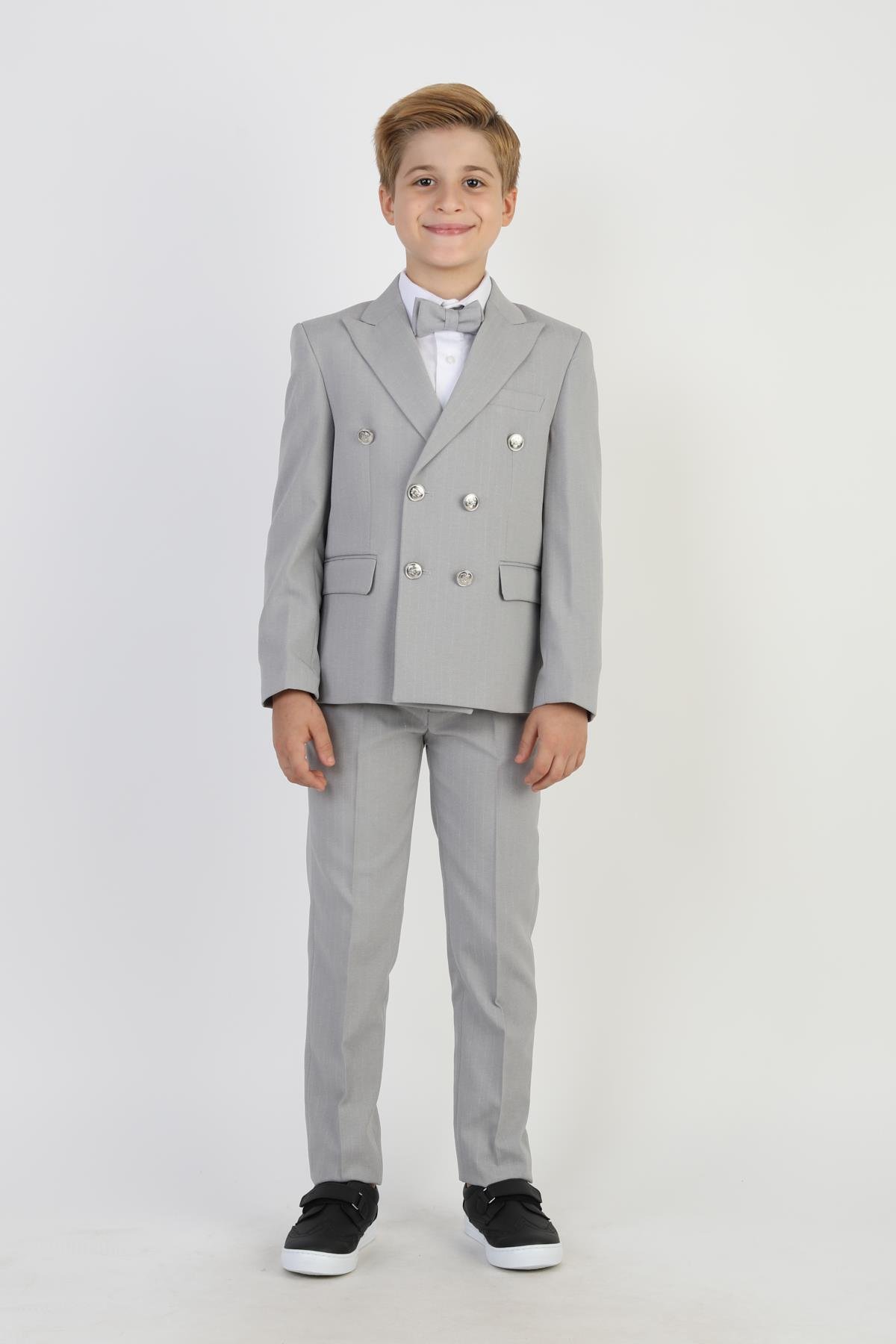 Kruvaze Çizgili Erkek Çocuk Takım Elbise (4151GRI)